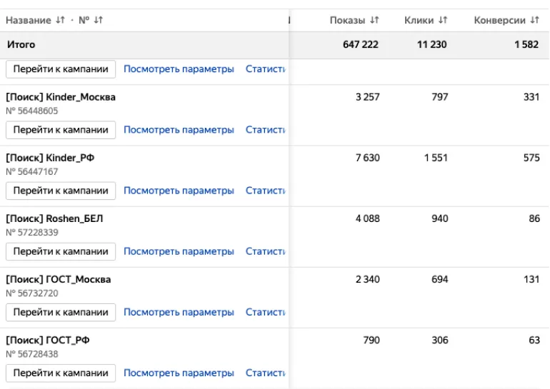 все новогодние подарки были разбиты на 6 групп и под каждую из них сформирована посадочная страница на сайте. Далее для каждой группы подготовили РК в поиске и РСЯ.