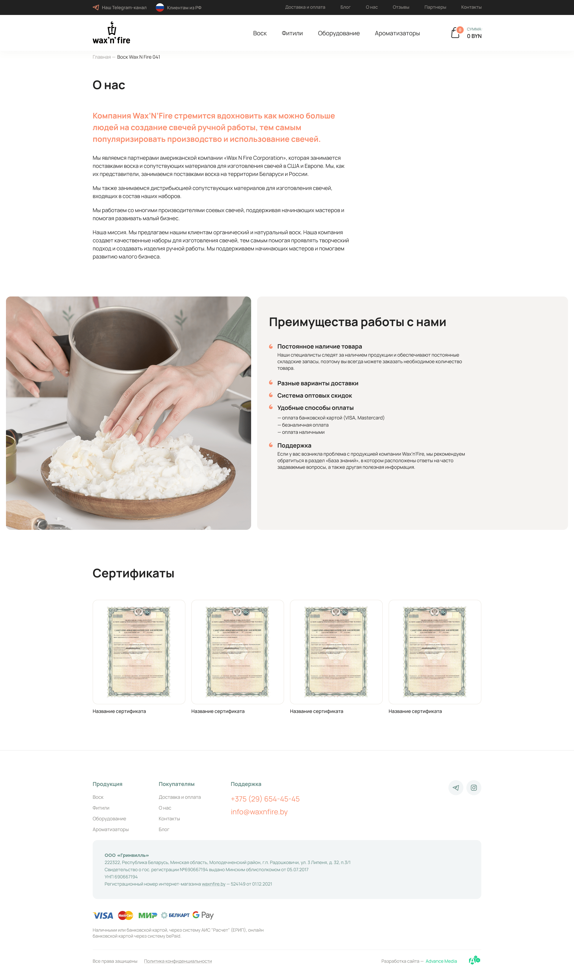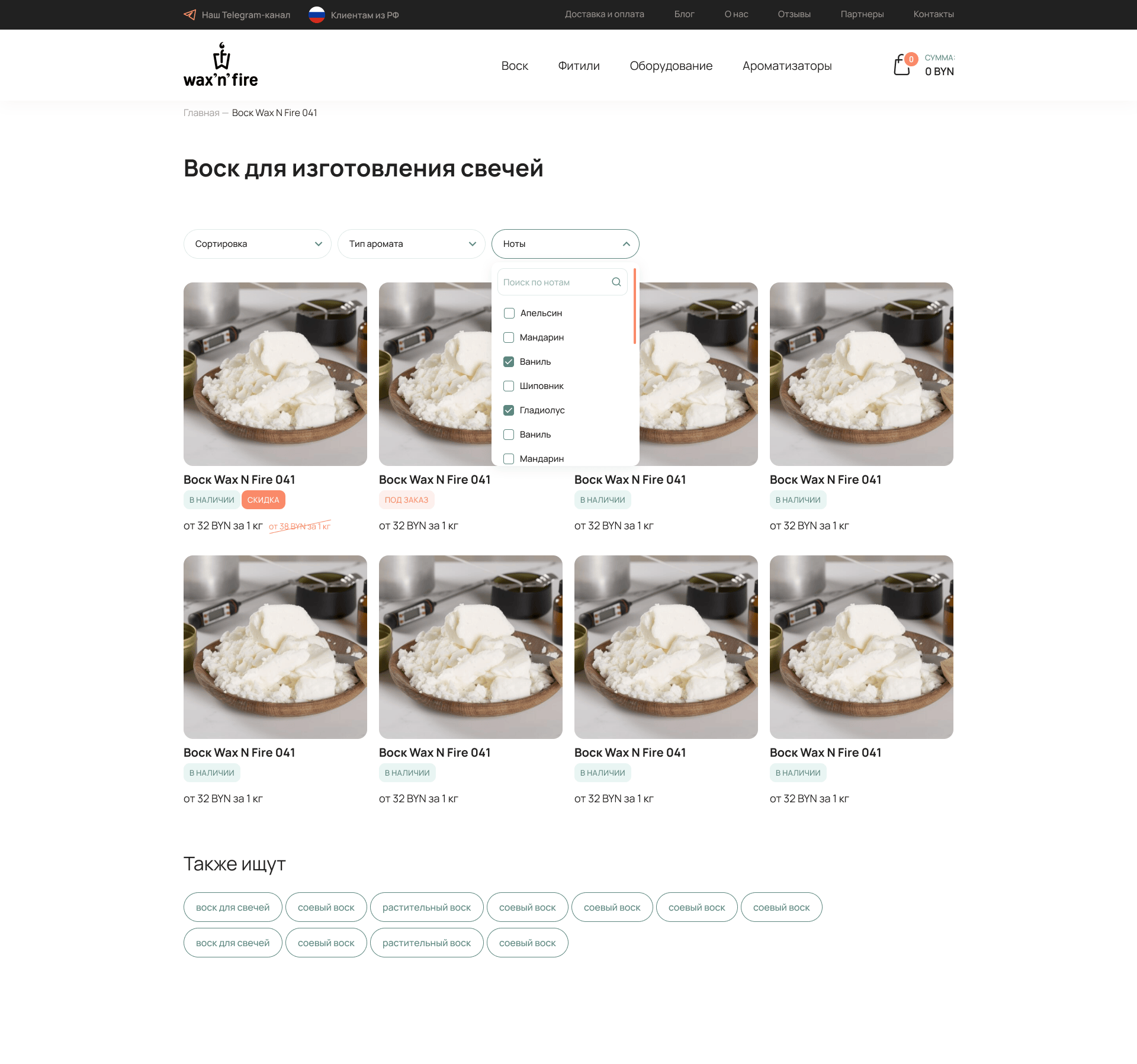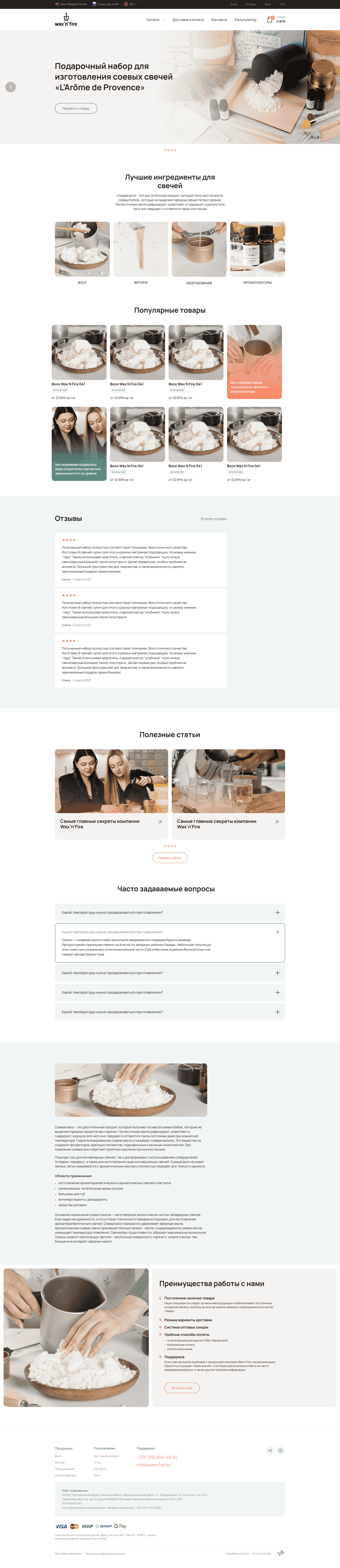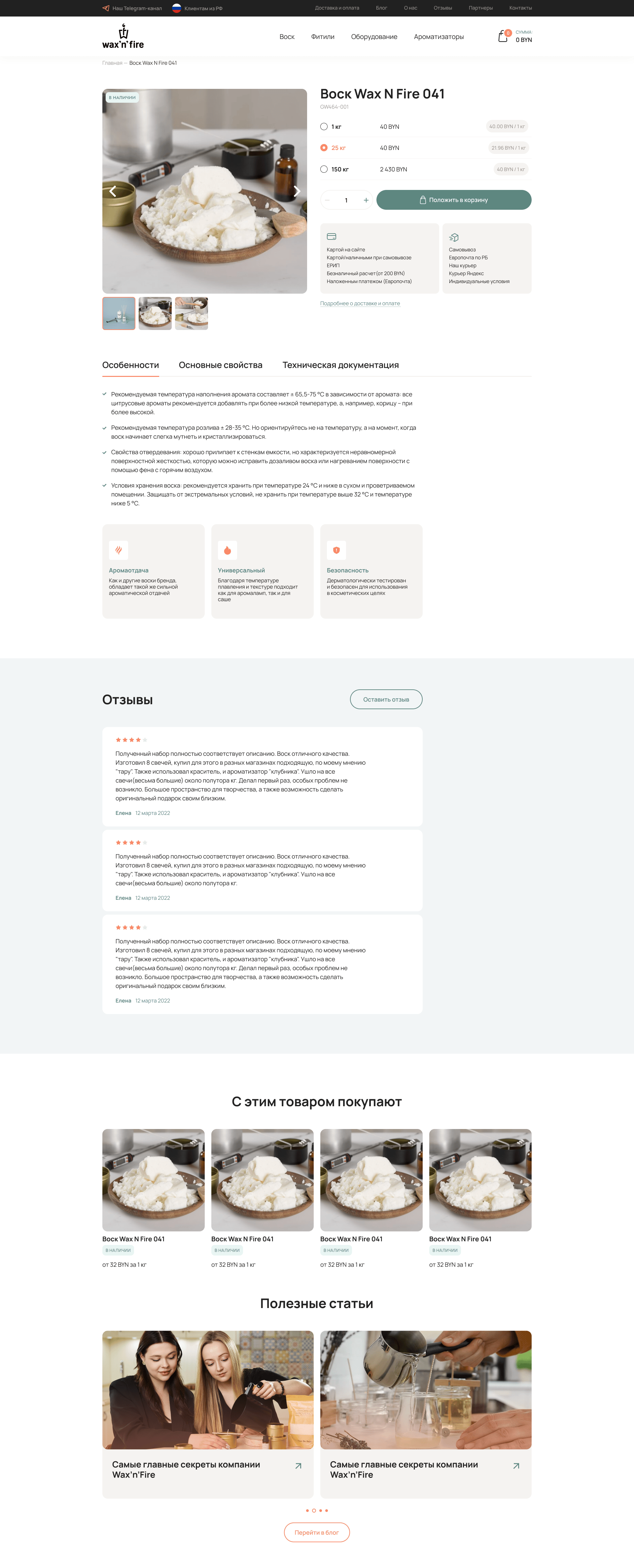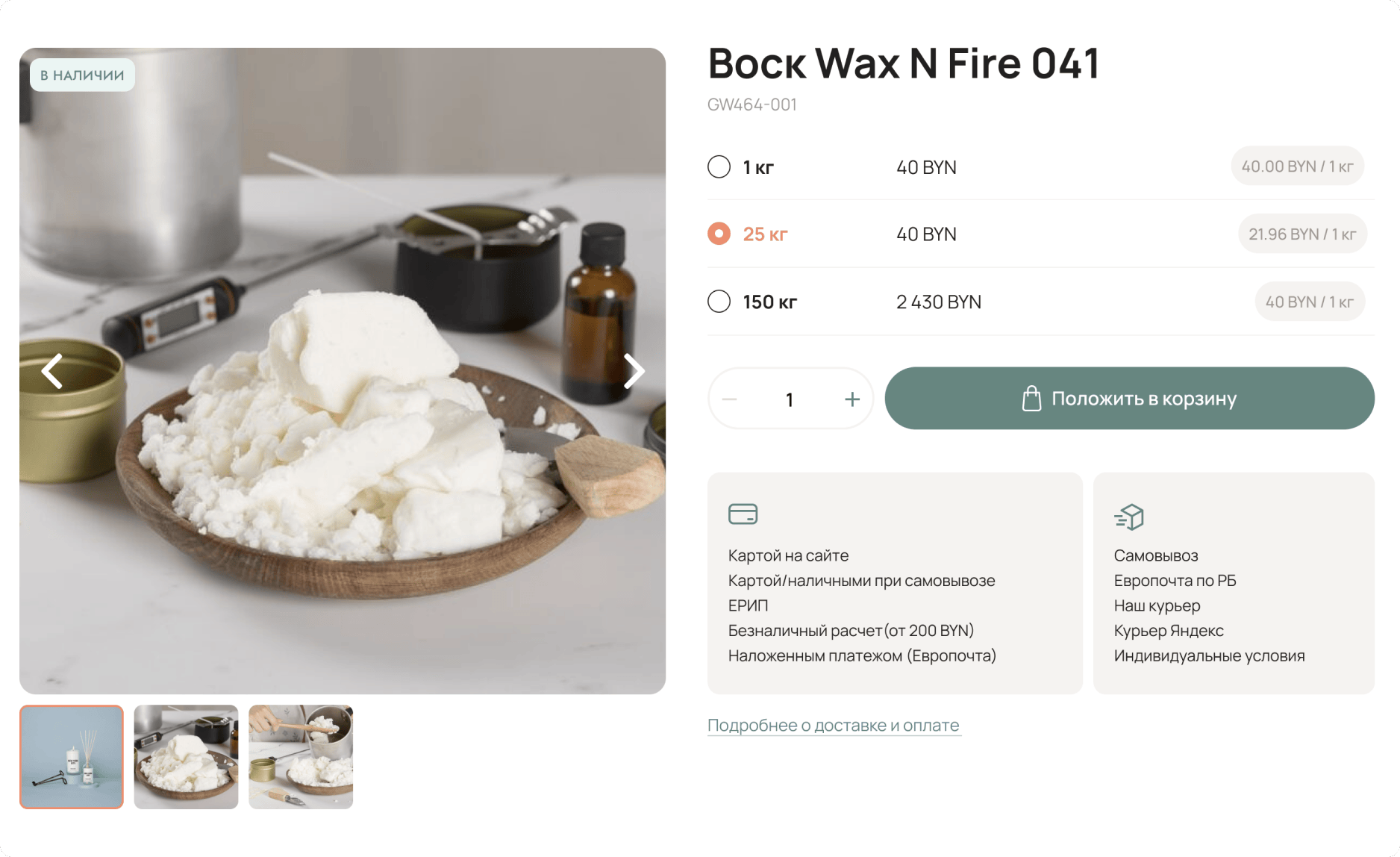 Разработали вариативную карточку товара, которая показывает зависимость цены от объема воска. Чем больше объем, тем меньше цена за один кг. – еще один механизм, мотивирующий купить больше товара.