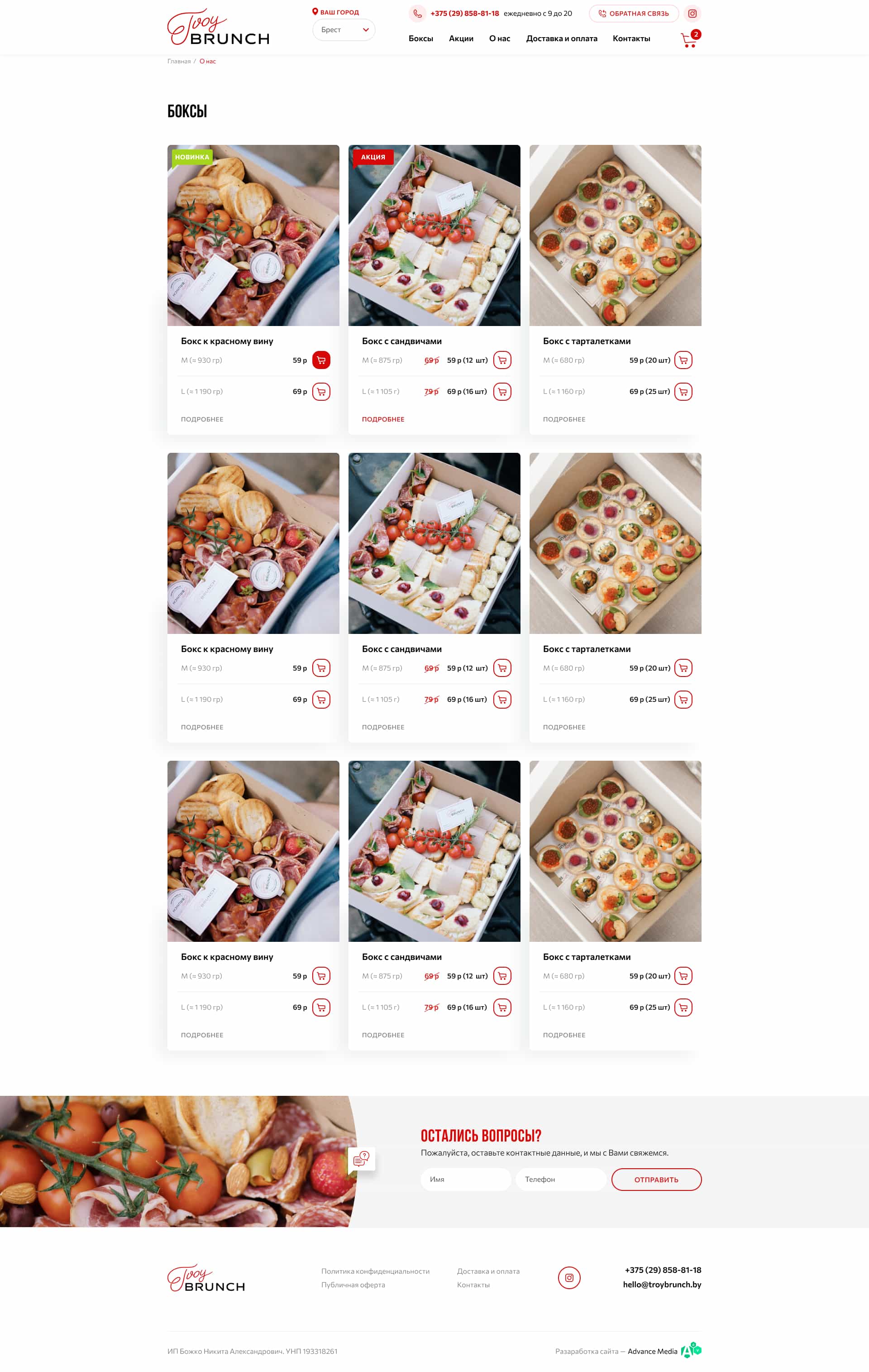 Особое внимание было уделено представлению товаров и процесу оформления заказа. Большая часть трафика на сайт планировалось получать из Instagram, поэтому необходимо было максимально упростить выбор и заказ через мобильный телефон.